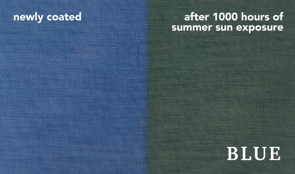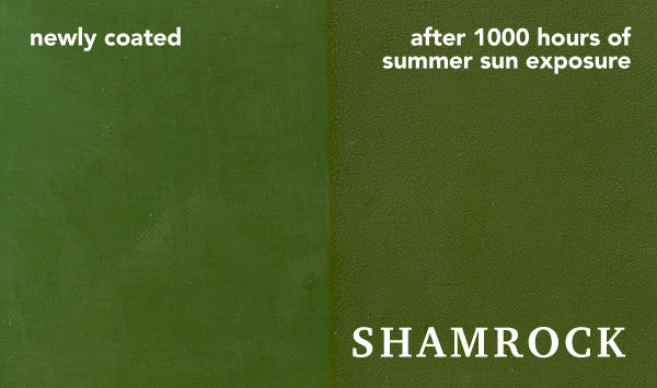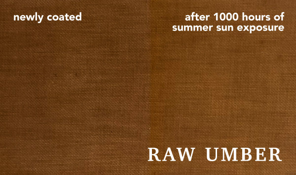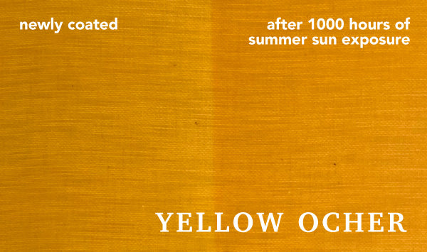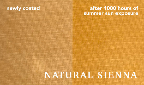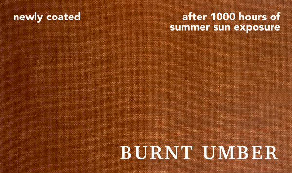 The swatches show each color applied at full strength, lighter tints can be achieved by adding less pigment into the polyurethane. The left side or each swatch represents the color when first applied, all colors will warm over time with the natural yellowing of the polyurethane as it is exposed to UV. The right side shows the same color after approximately 1000 hours of summer sunlight exposure.
