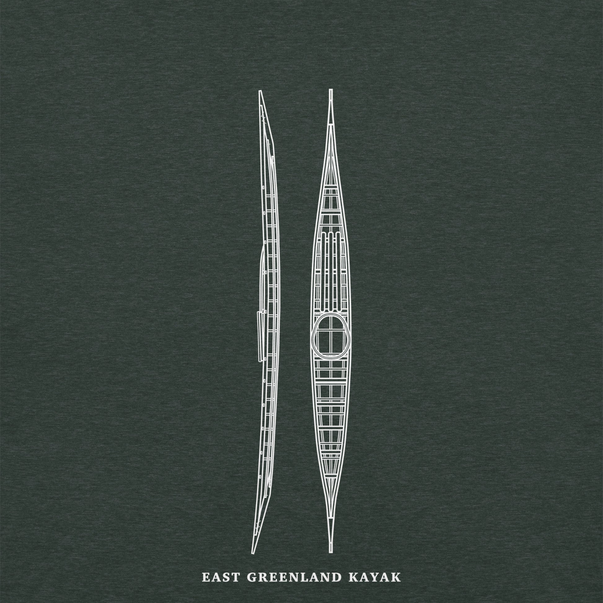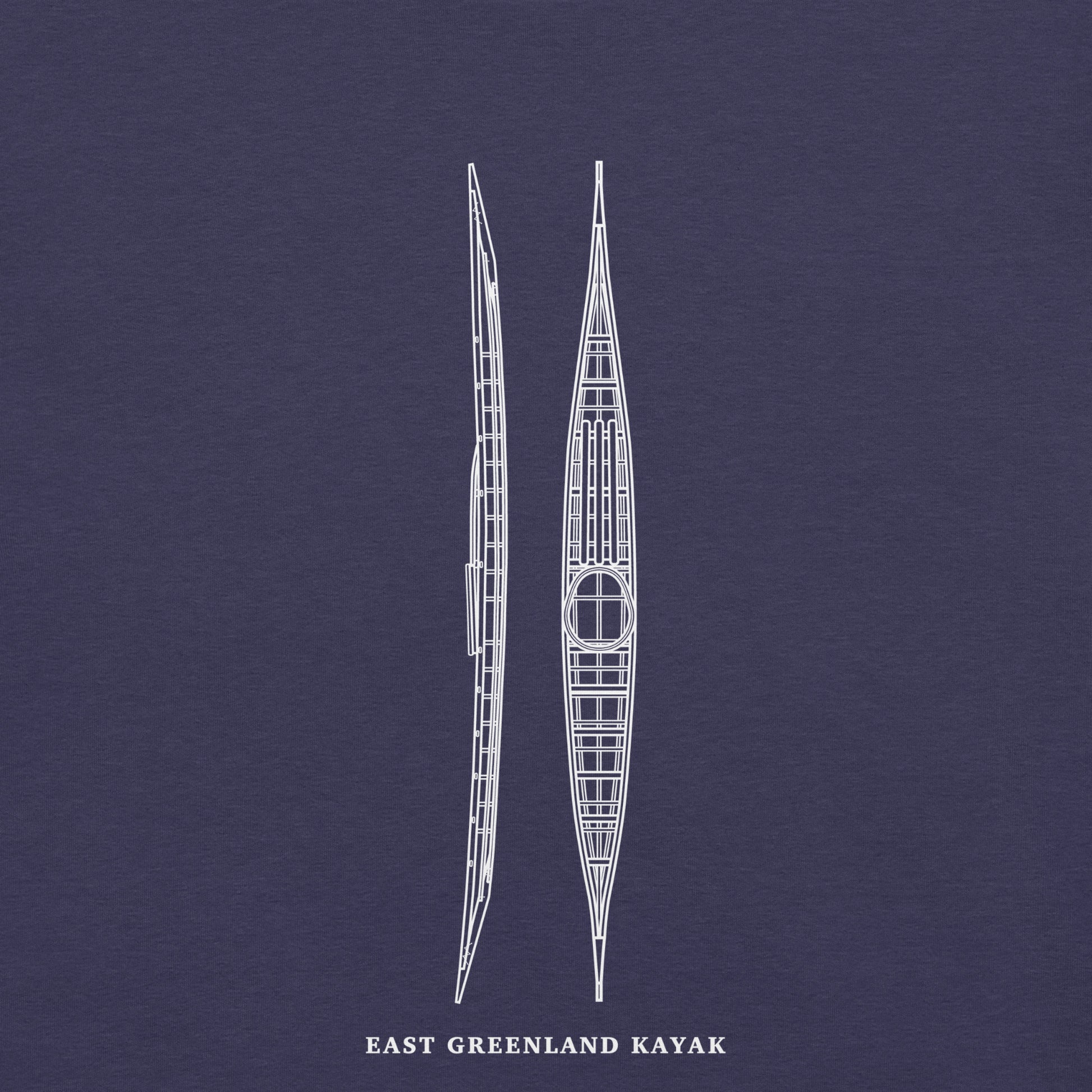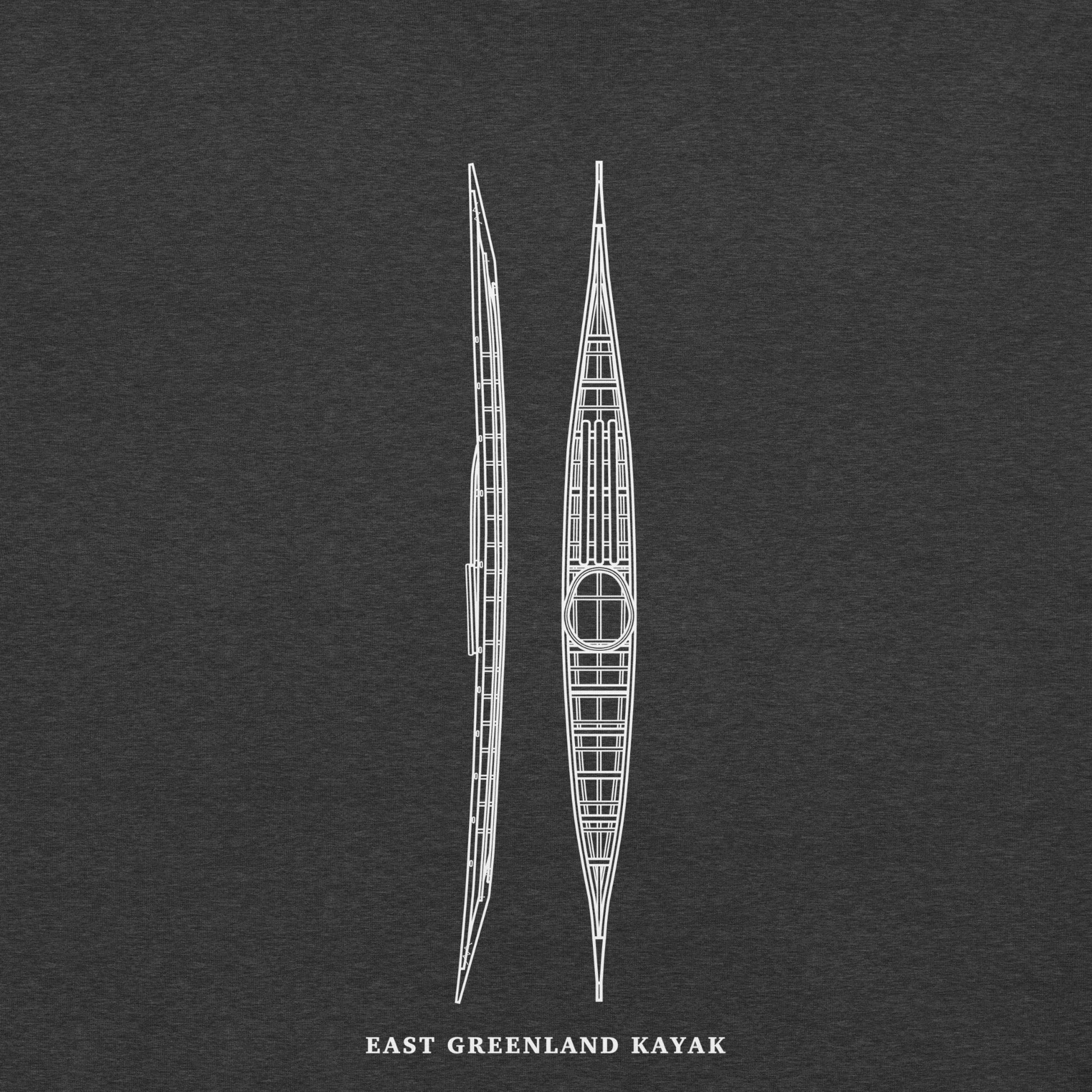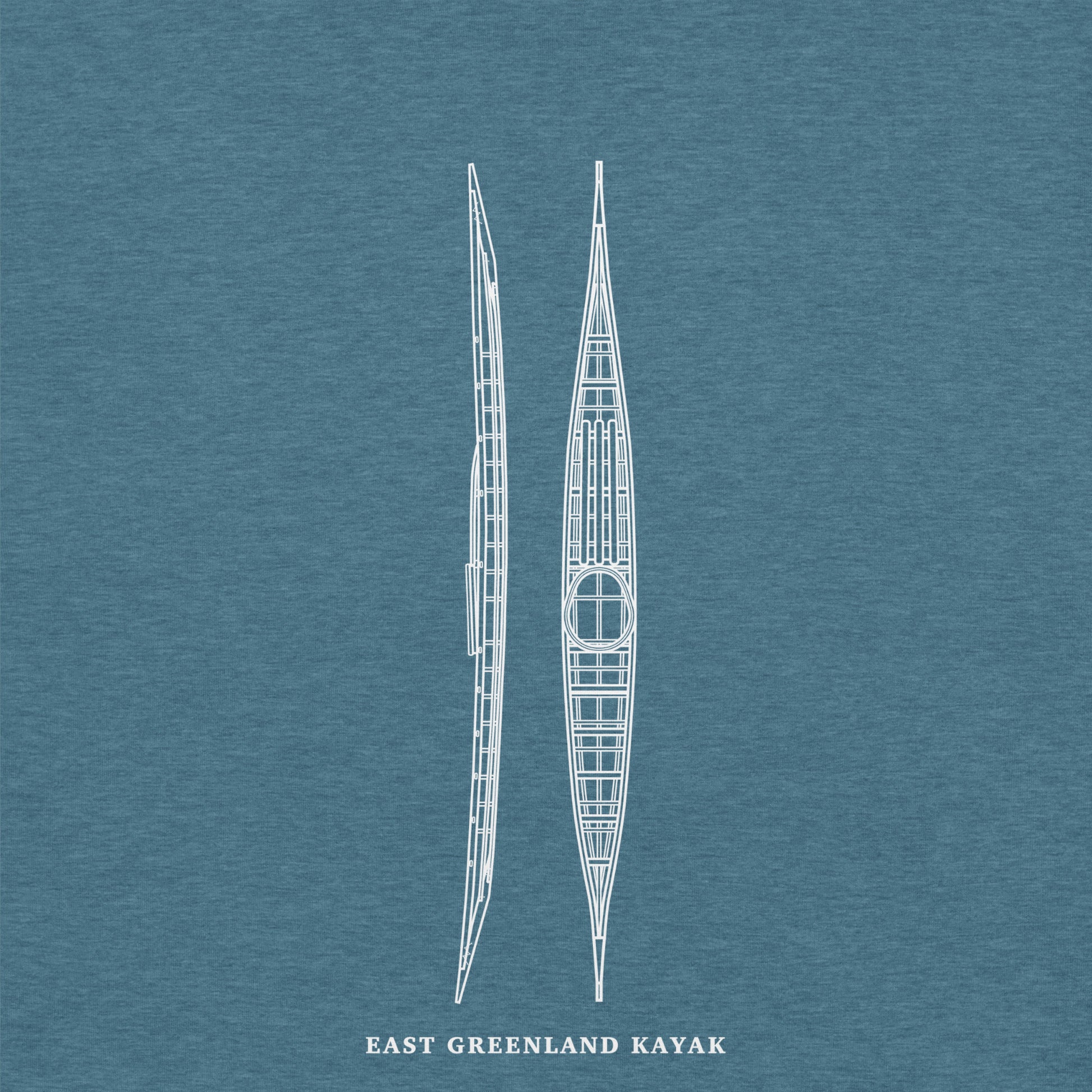 Wear your boat! These lightweight soft cotton/poly heathered tees feature an extra large line-drawing of the East Greenland frame and the CFK logo on the left sleeve.