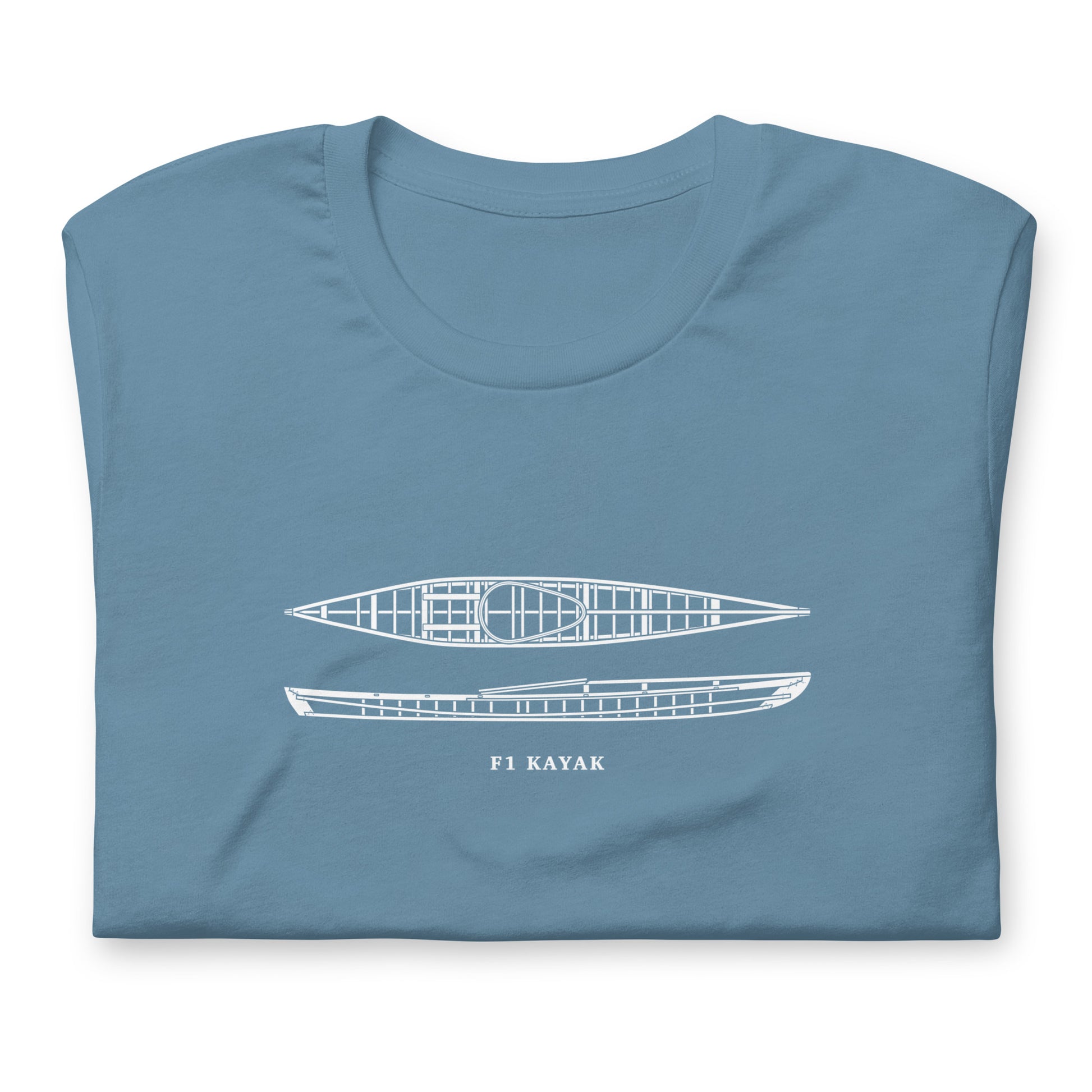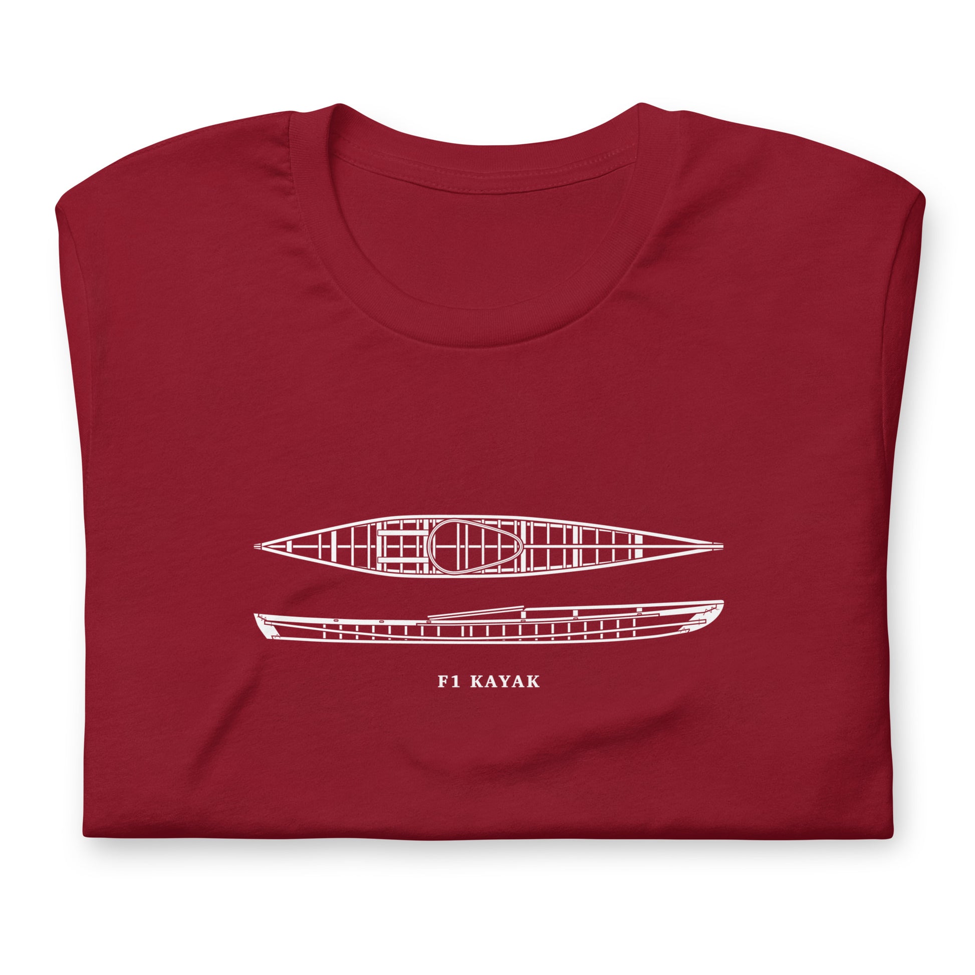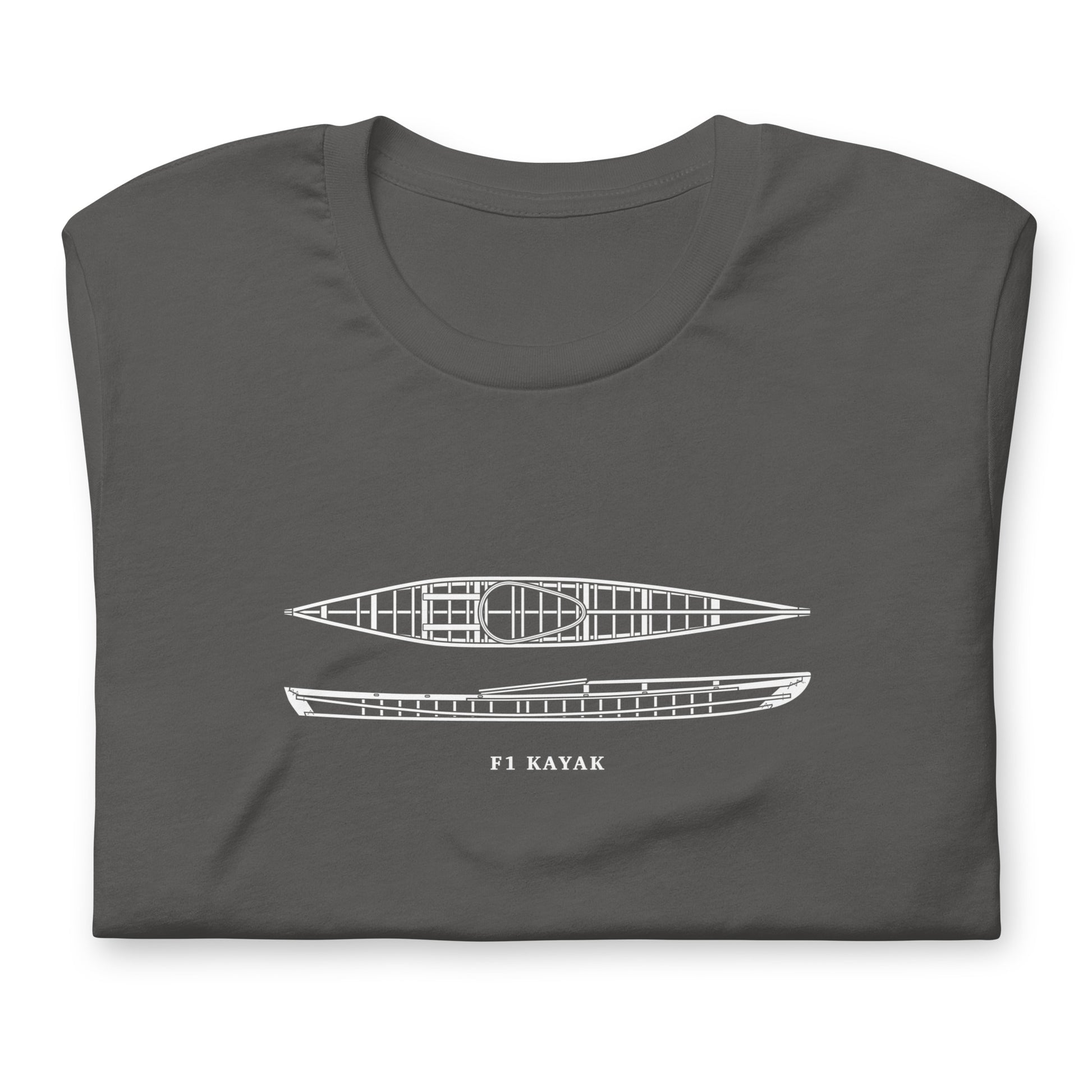 Wear your boat! These lightweight soft cotton tees feature an F1 kayak frame graphic and the CFK logo on the left sleeve.