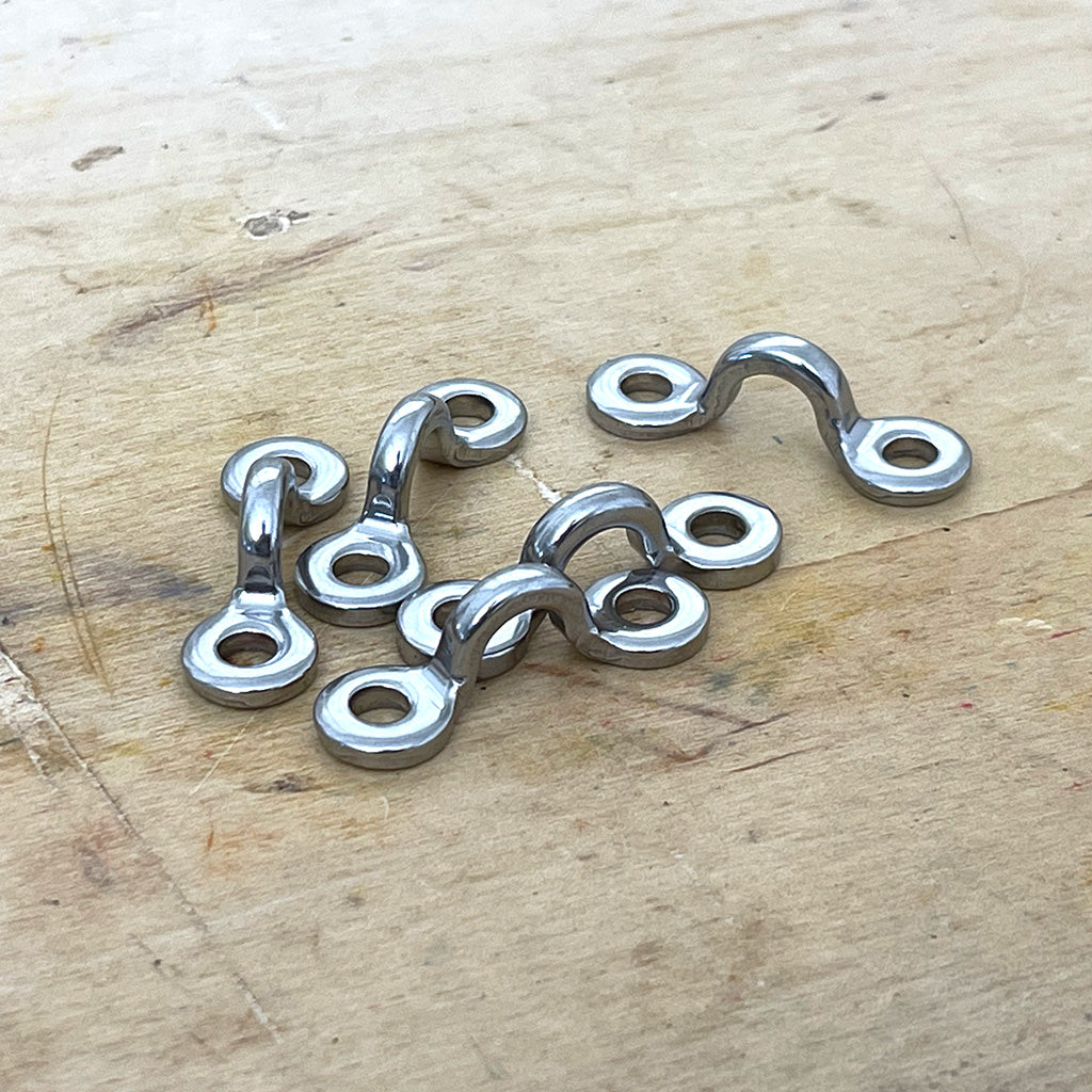 This stainless steel pad eye is the only one we've found with a narrow enough hole spacing to fit on top of our canoe stems. Intended as a pop rivet mount, we find that it still works fine with #6 1 1/4" stainless screws (included).