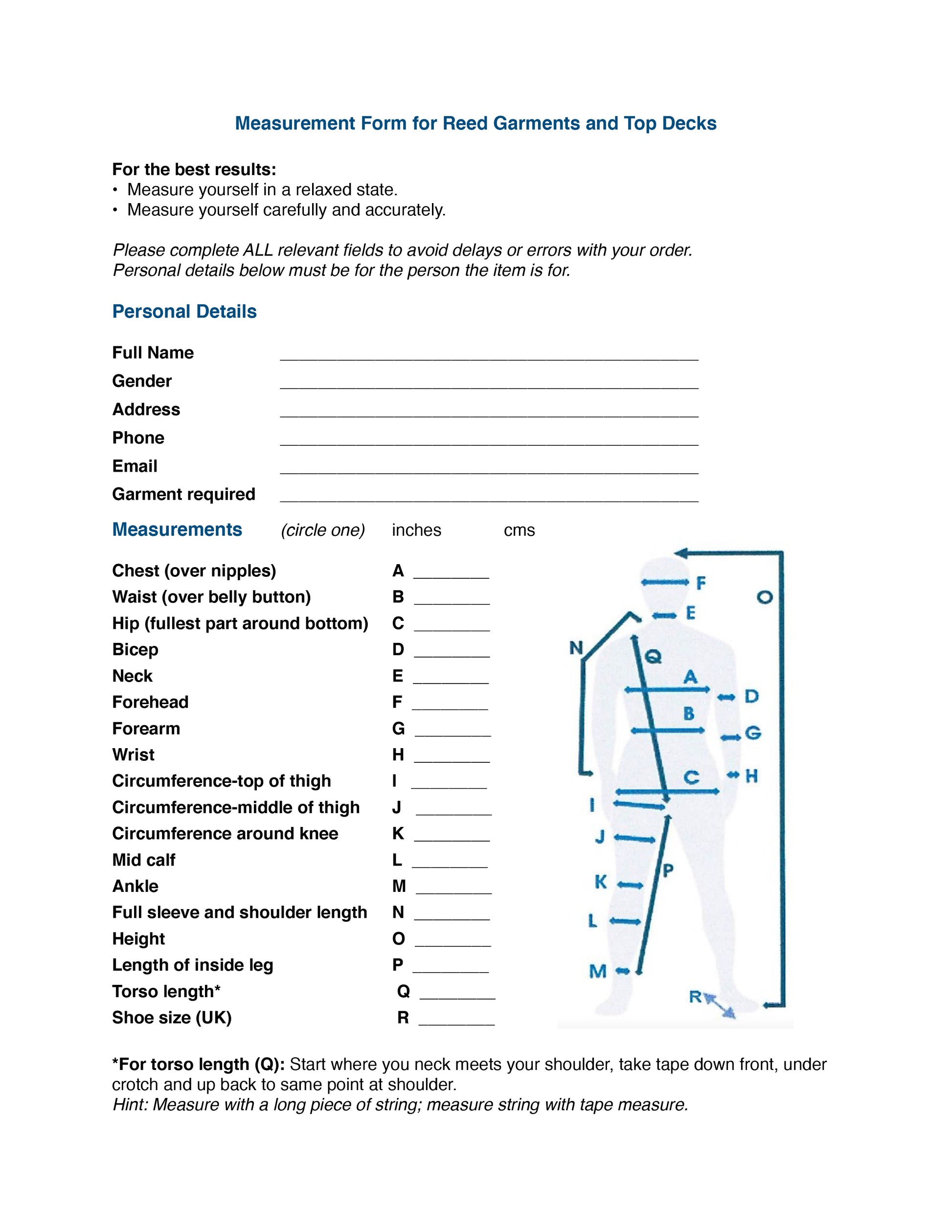 Tuiliqs are custom made to your measurements. We will contact you for your measurements after we receive your order, or you can email this form to liz@capefalconkayaks.com.