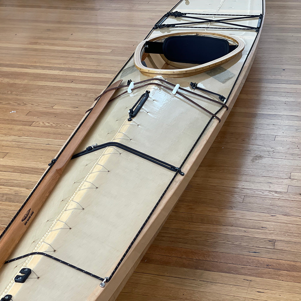 For paddlers looking for extra visibility at night, our nylon perimeter line is an abrasion resistant life-safety rated cord (meaning you could theoretically use it in climbing applications) with highly reflective striping woven into the sheath that is not obtrusive in the daylight, but glows brightly if light hits it at night. An excellent safety feature in areas with boat traffic and also nice for keeping track of your paddling partners in the dark!