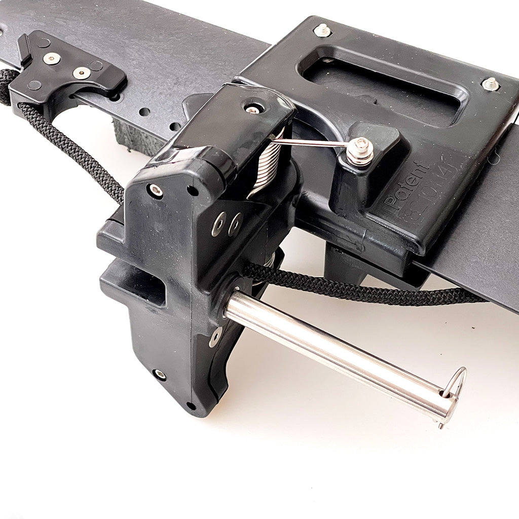 This Sea-Lect rudder pairs well with the Sea-Lect Rudder Control Footbraces because when the rudder is pulled up, it locks the footbraces so they don't pivot, giving you solid foot purchase when the rudder is not in use. The Sea-Lect rudder isn't as stiff and smooth as a Smart Track rudder, but it does have an adjustable blade height and sits much lower to the deck when stowed than the Smart Track system, making it less prone to accidental damage.