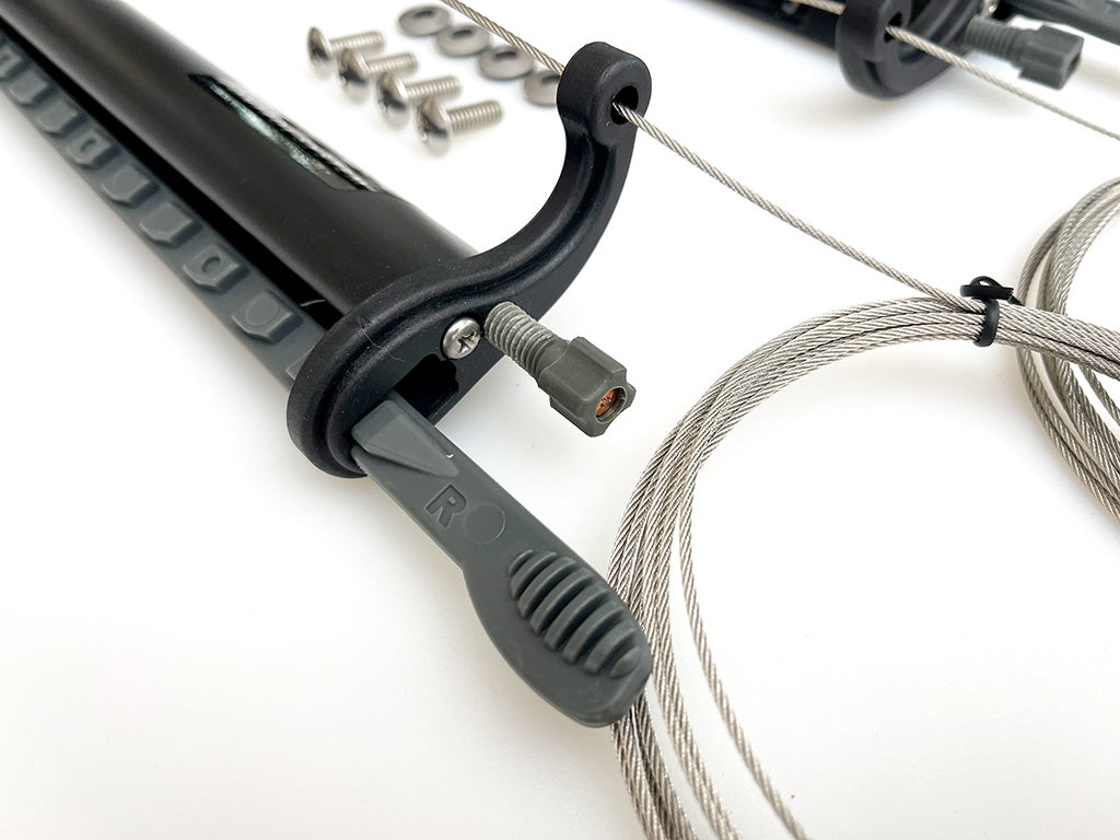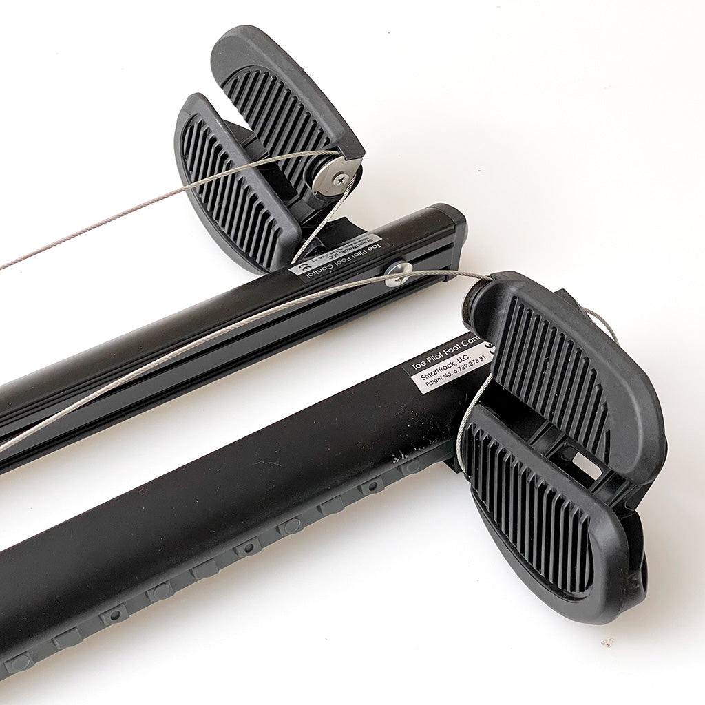 Note: these footbraces are 8oz heavier per pair than either of our other rudder control options. The foot pads are also much longer than Sea-Lect pedals, making it very difficult slide gear bags in and out of the bow of one of our kayaks. For this reason we typically don't use them in "camping" boats, but they do give lovely control in a racing kayak or dedicated day boat.