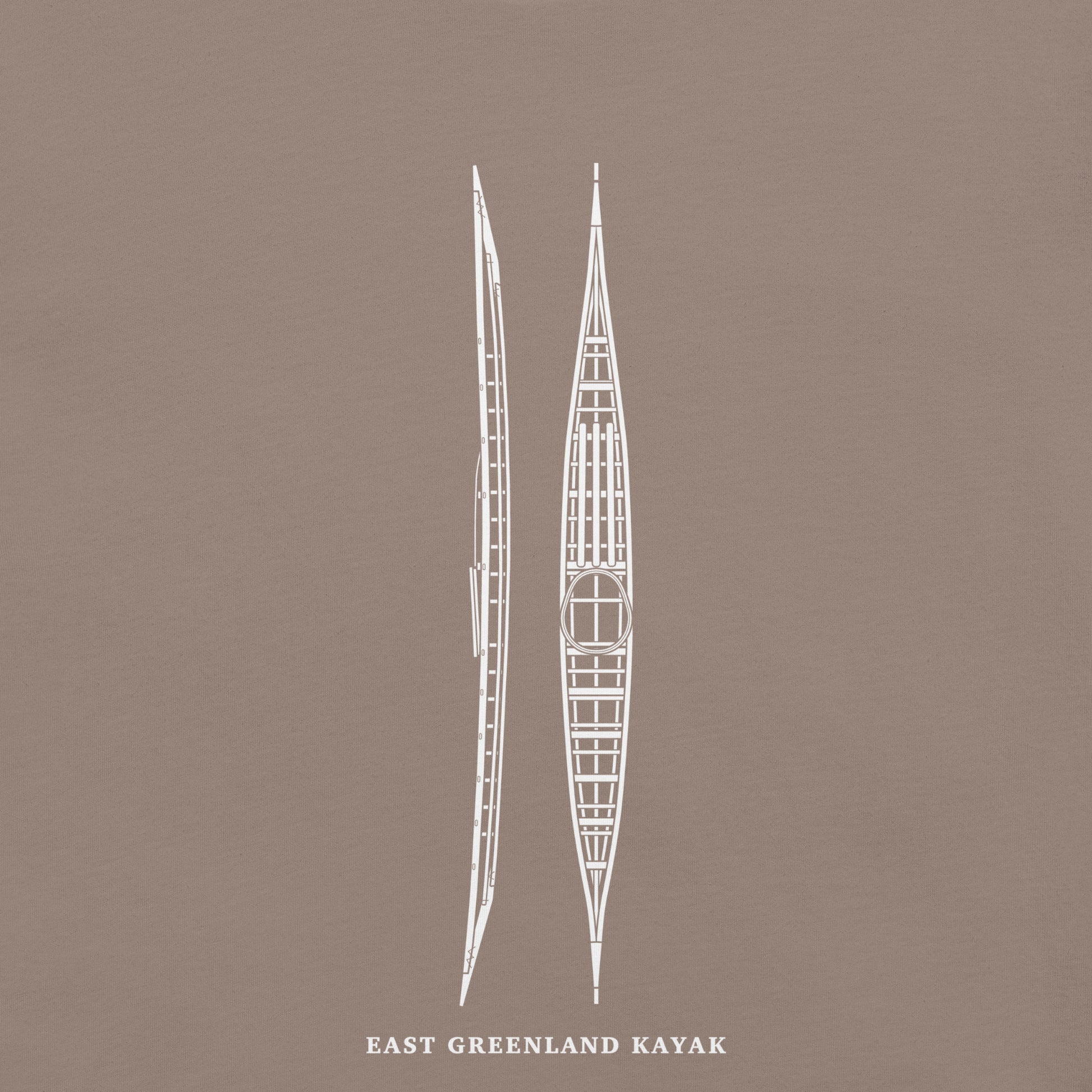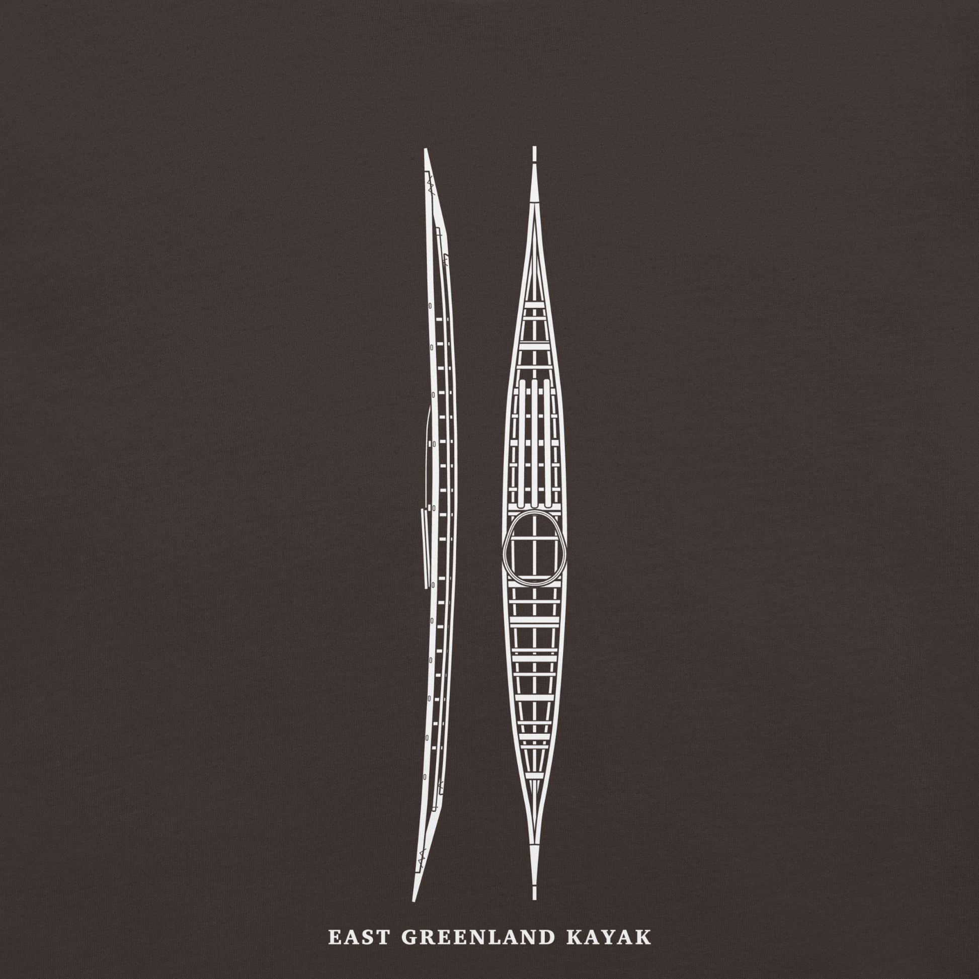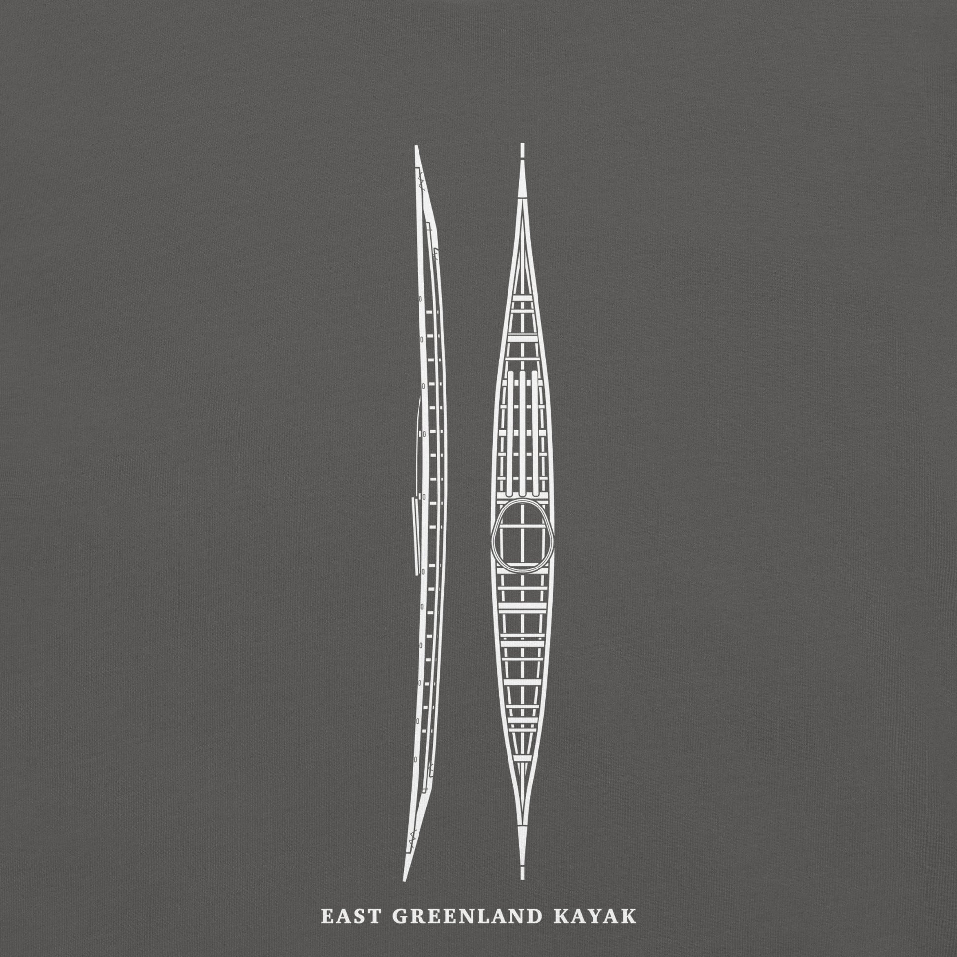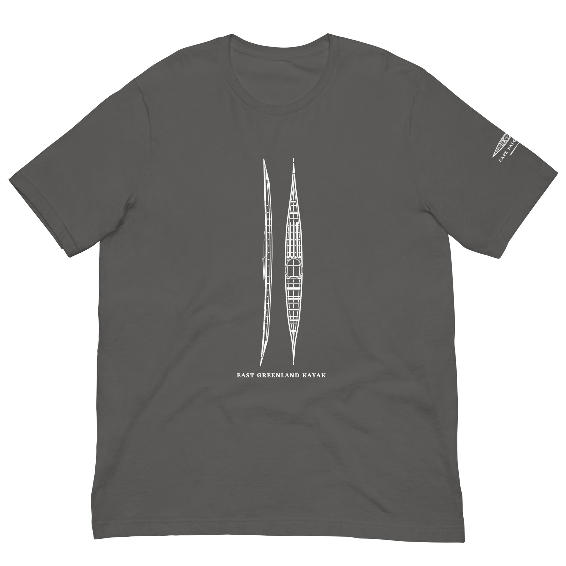 Wear your boat! These lightweight soft cotton tees feature an extra large graphic of the East Greenland kayak frame and the CFK logo on the left sleeve.