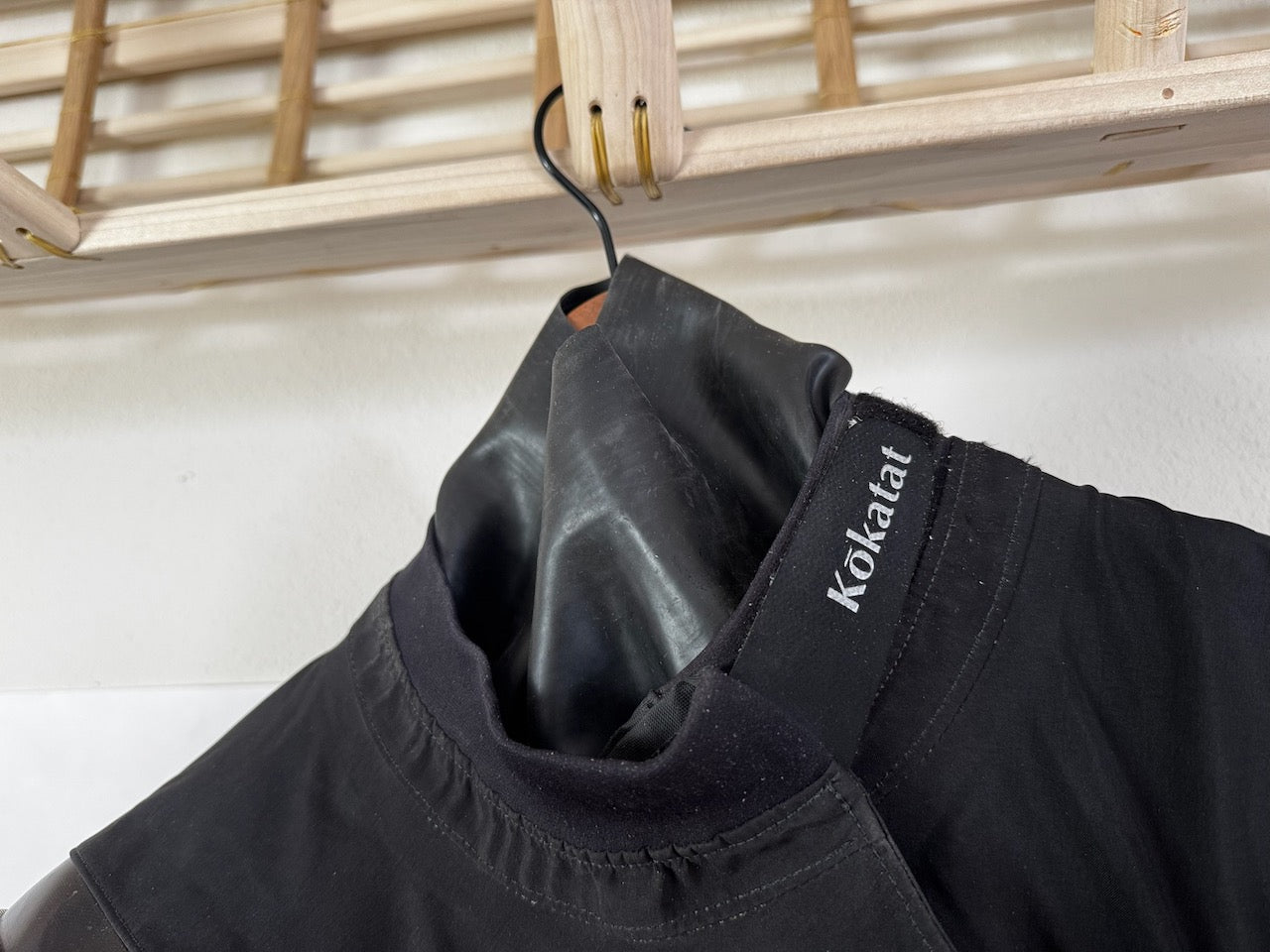 Used Kokatat GFER Front-entry Gore Tex dry suit w/relief zipper and socks. Custom color, Black. Men’s size large.