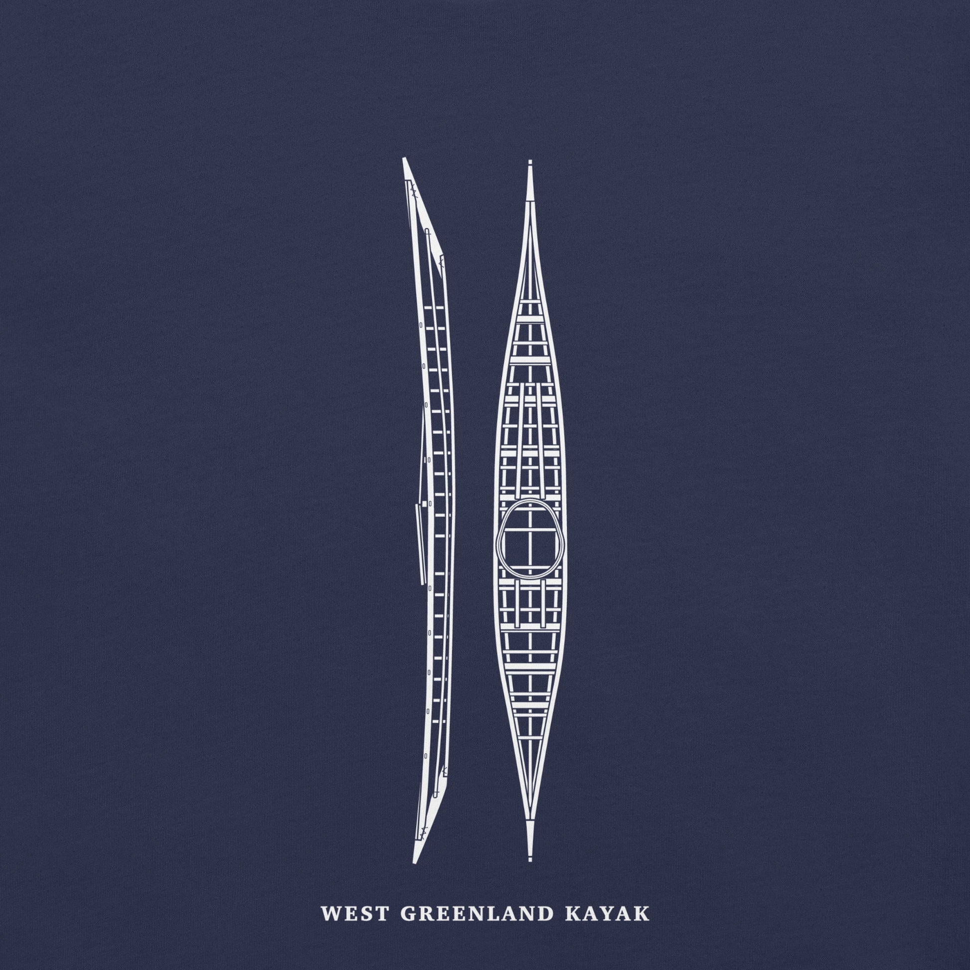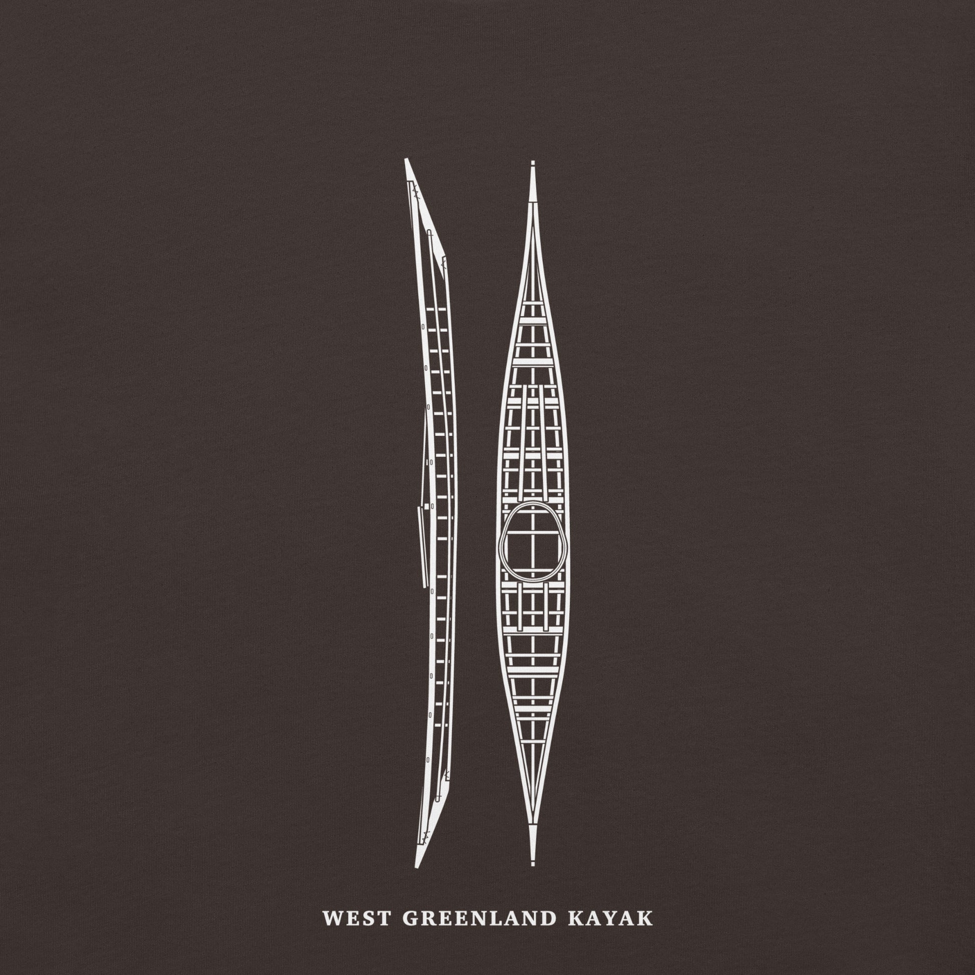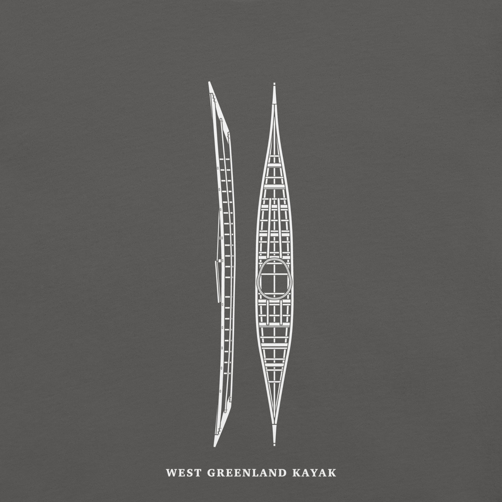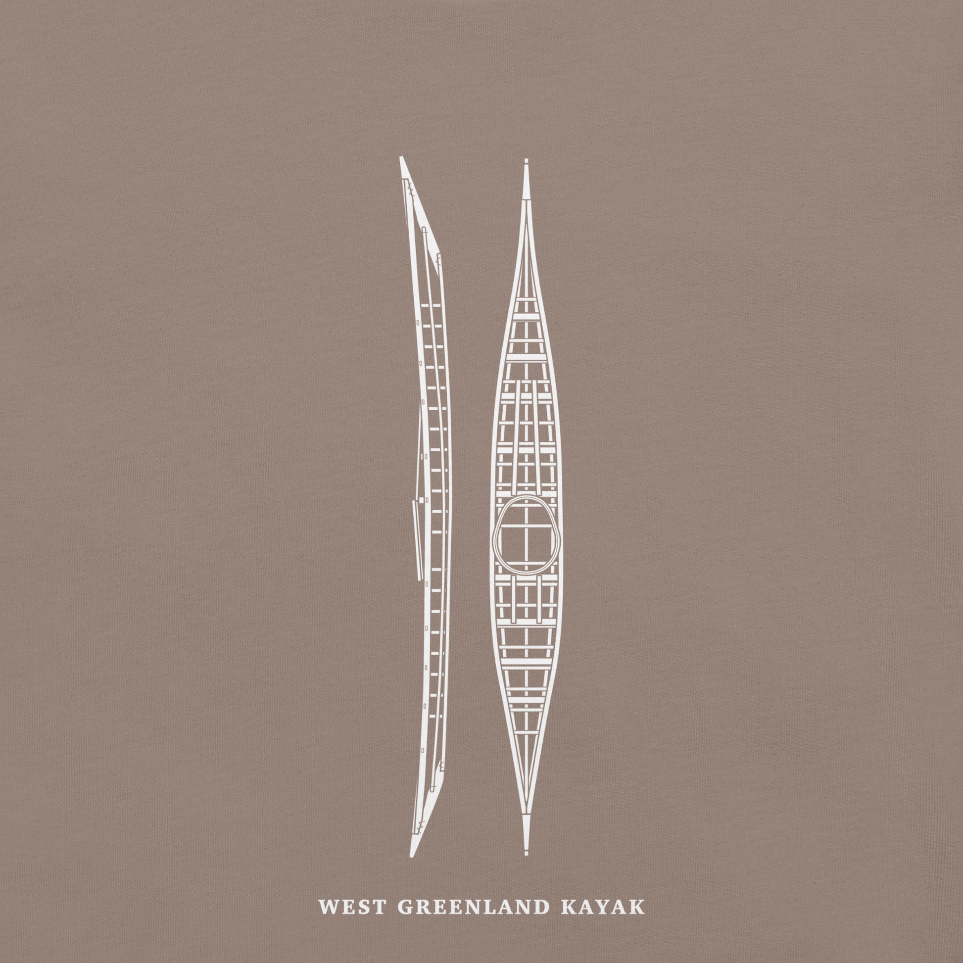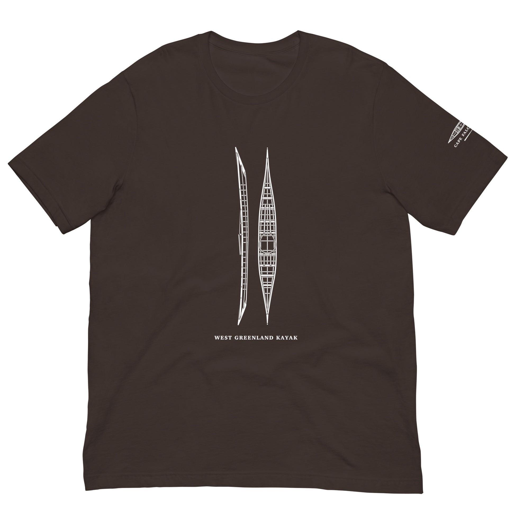 Wear your boat! These lightweight soft cotton tees feature an extra large graphic of the West Greenland kayak frame and the CFK logo on the left sleeve.